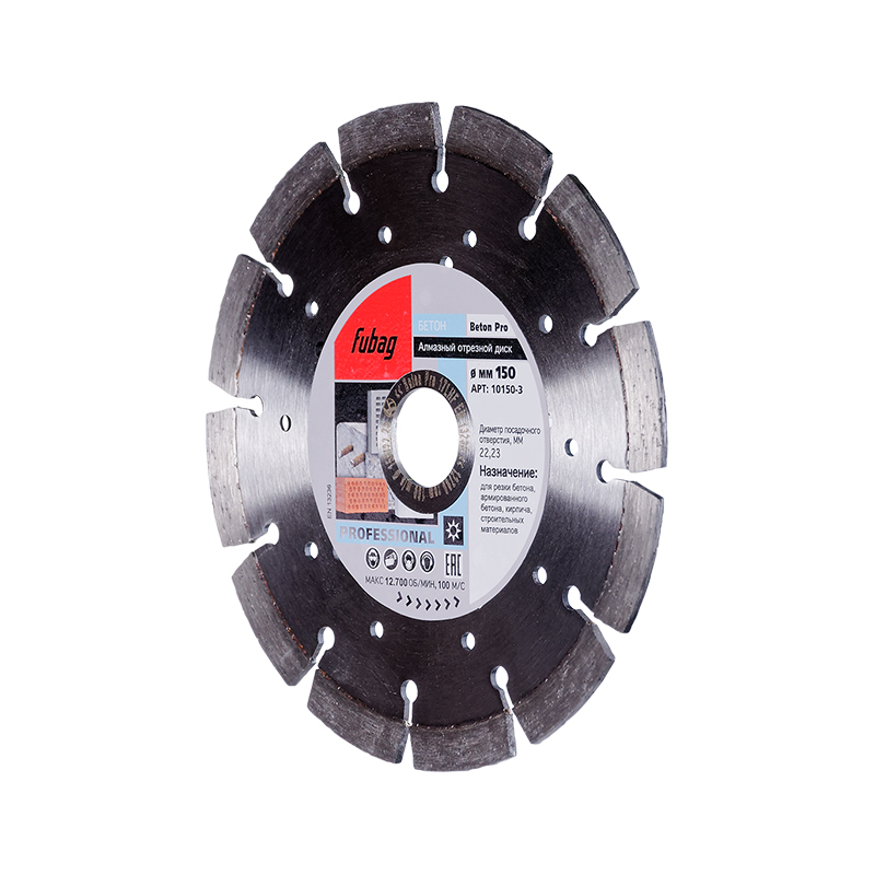 Характеристики Алмазный отрезной диск FUBAG Beton Pro D150 мм/ 22.2 мм по бетону
