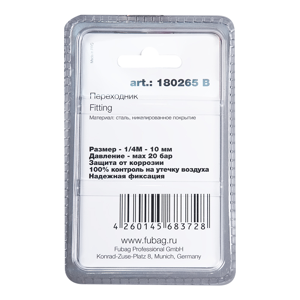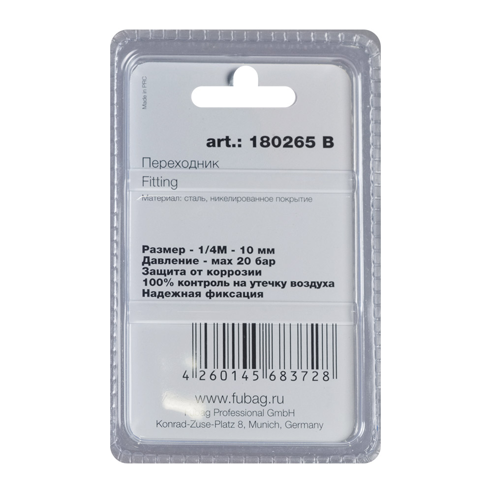 Инструкции о FUBAG Переходник 1/4 дюйма М на елочку 10мм с обжимным кольцом 15Х18мм, блистер 1 шт