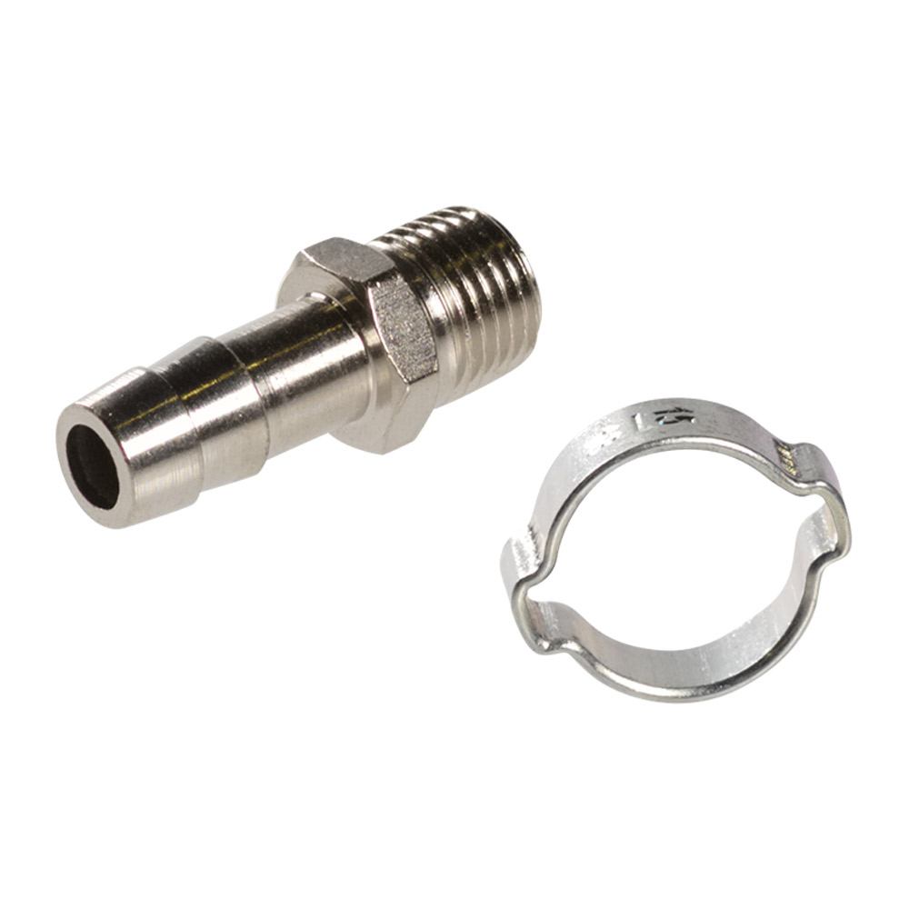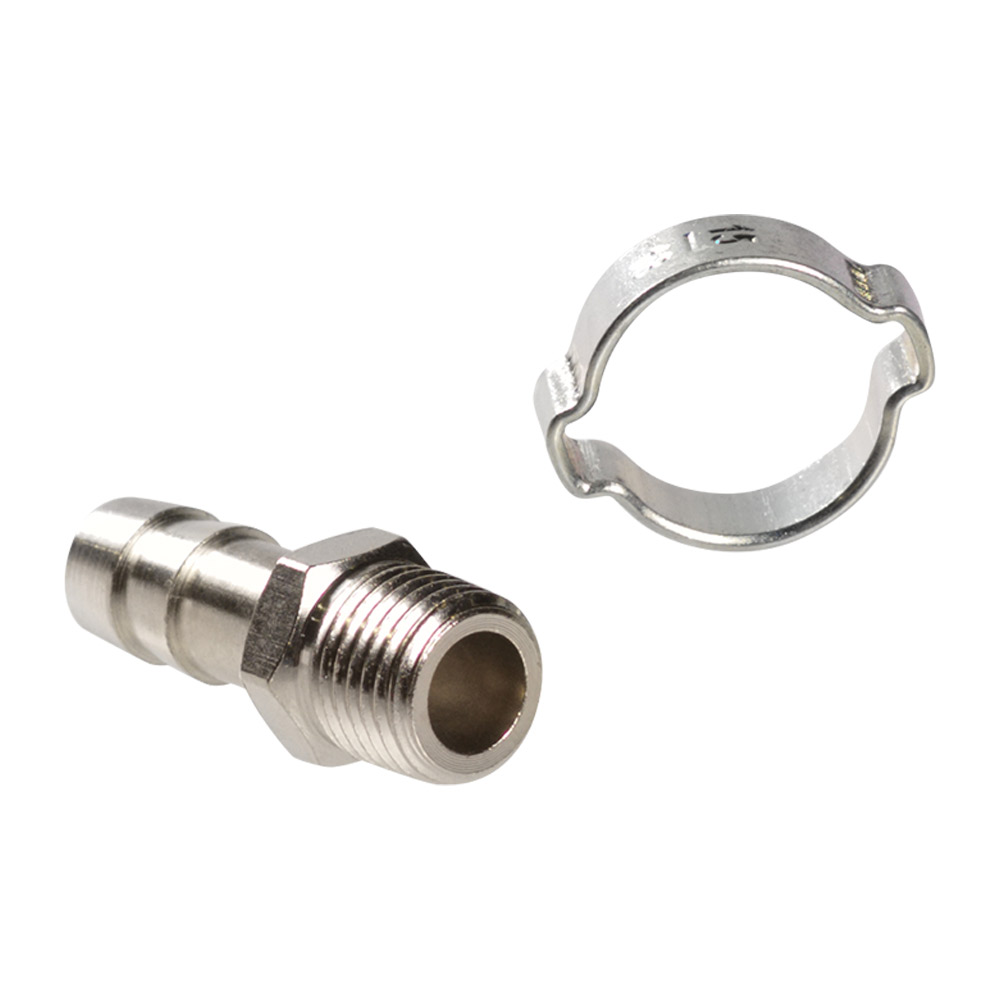 Характеристики FUBAG Переходник 1/4 дюйма М на елочку 10мм с обжимным кольцом 15Х18мм, блистер 1 шт